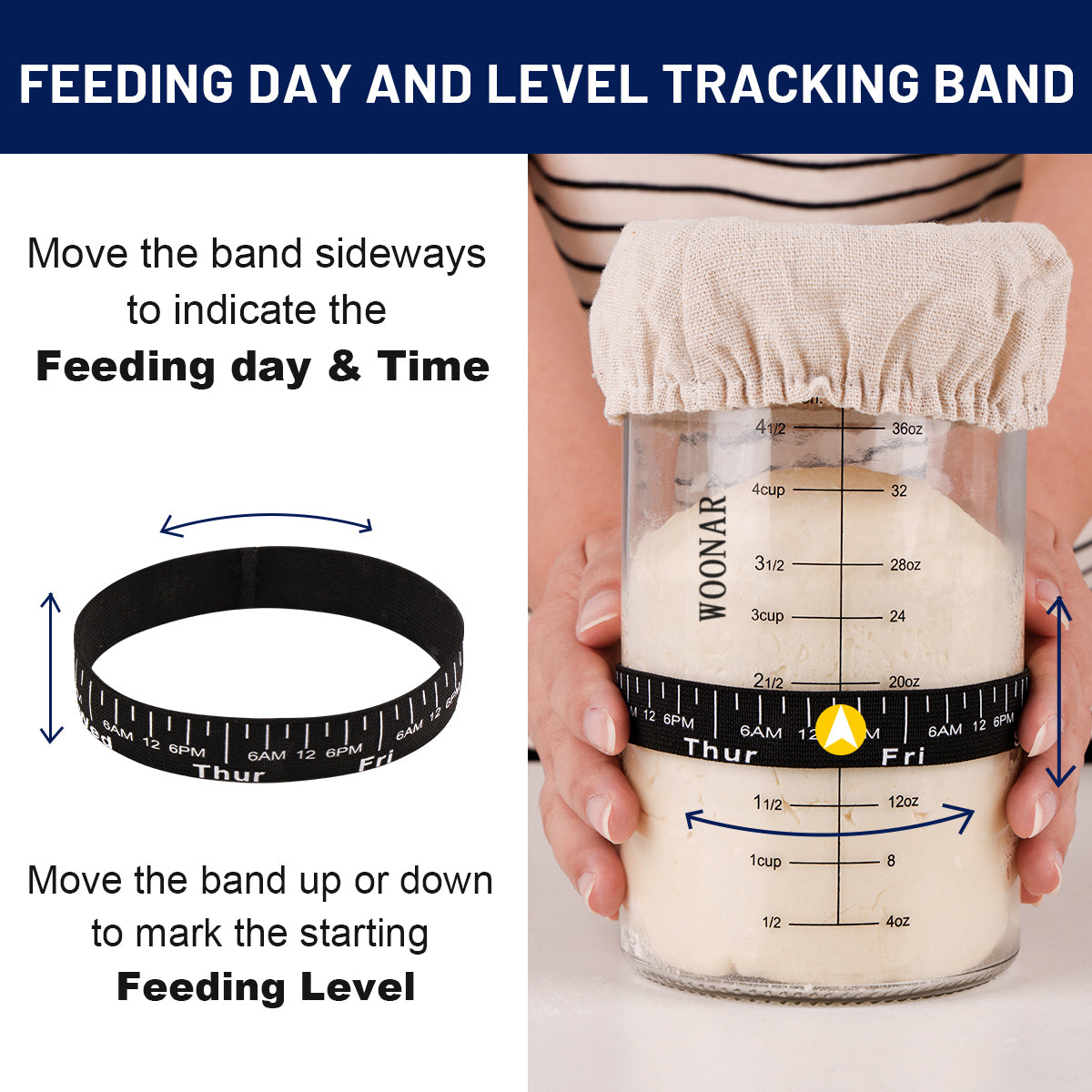 WOONAR Sourdough Starter Kit : 40 oz Sourdough Starter Jar Glass, Sourdough Bread Baking Supplies with Thermometer, Loofah Brush, Stainless Steel Lid, Silicone Scraper, Cloth Cover, Date Marked Feeding Band